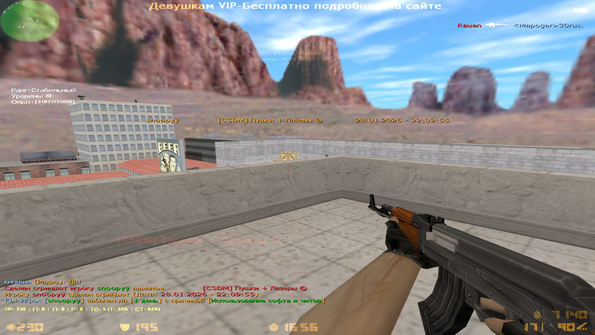 Причина: Использование софта и читов